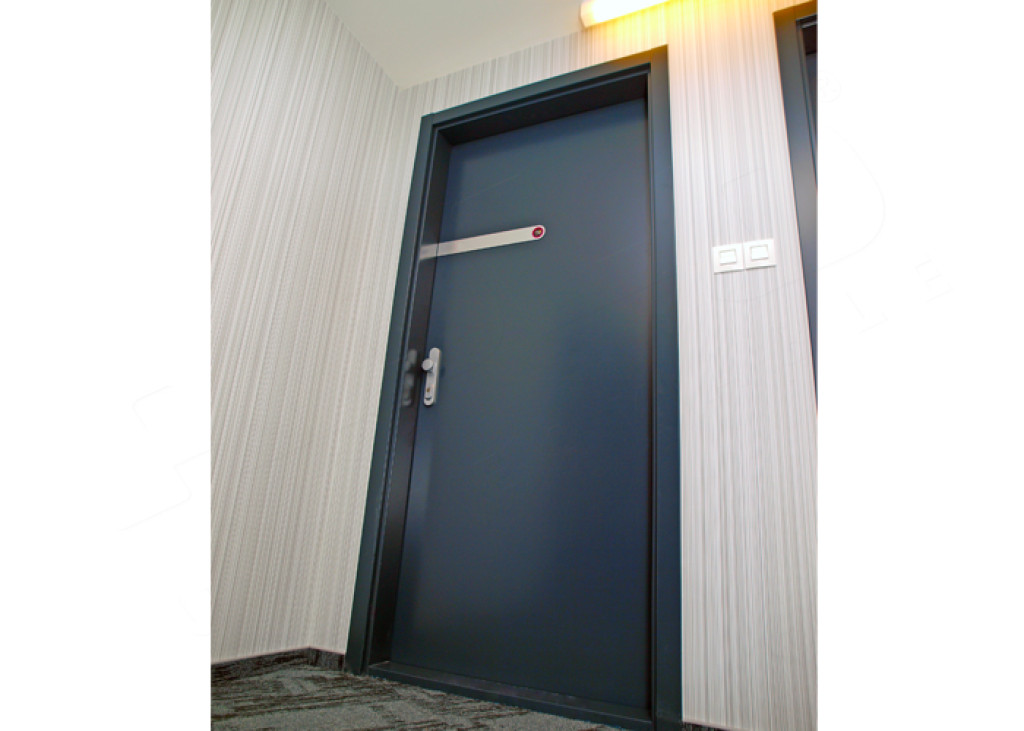 Die Türoberfläche wird mit einem mehrkomponentigen Polyurethan-Mattlack lackiert, was eine hohe Widerstandsfähigkeit und ein ästhetisches Erscheinungsbild garantiert. Auswahl aus der gesamten RAL-Farbpalette möglich. Die Farbe kann glänzend, matt oder seidenmatt sein. Farbige Türen werden pulverbeschichtet eingebrannt.