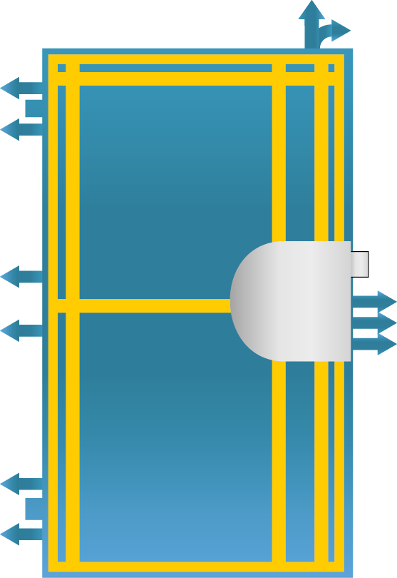 - Eine doppelte Dichtung entlang des gesamten Türumfangs verhindert in den Wintermonaten das Eindringen von kalter Luft und den Wärmeverlust nach außen, in den Sommermonaten umgekehrt.
