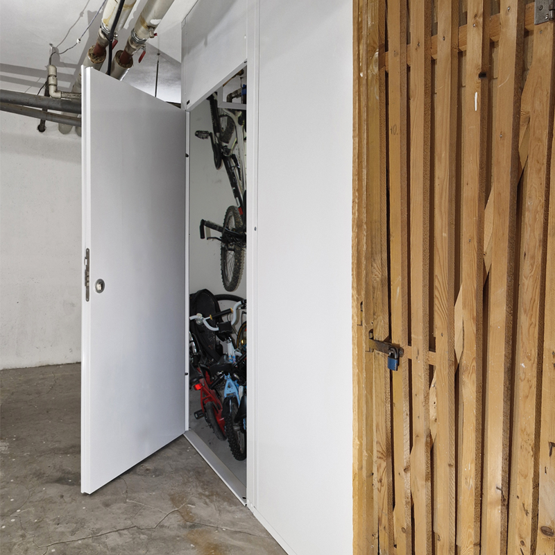 Im Flügel der Kellertür befindet sich ein Spreizschloss ADLO RESIST BN. Es wird mit einem Zylinderzylinder betätigt. Der Schließzylinder ist durch integrierte Beschläge gegen Aufbrechen und gewaltsames Aufhebeln geschützt. Die Bedienung erfolgt wie bei Ihrer Eingangstür mit einem Schlüssel.