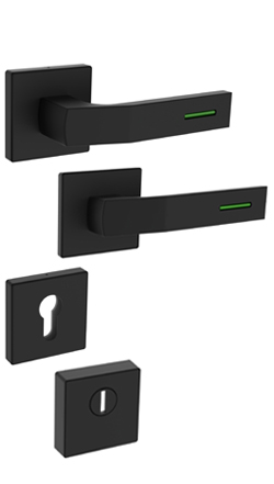 Sicherheitsrosettenbeschlag Rostex R4/H, eckig, Schwarz matt, Luminogrün, für Economy-Serie