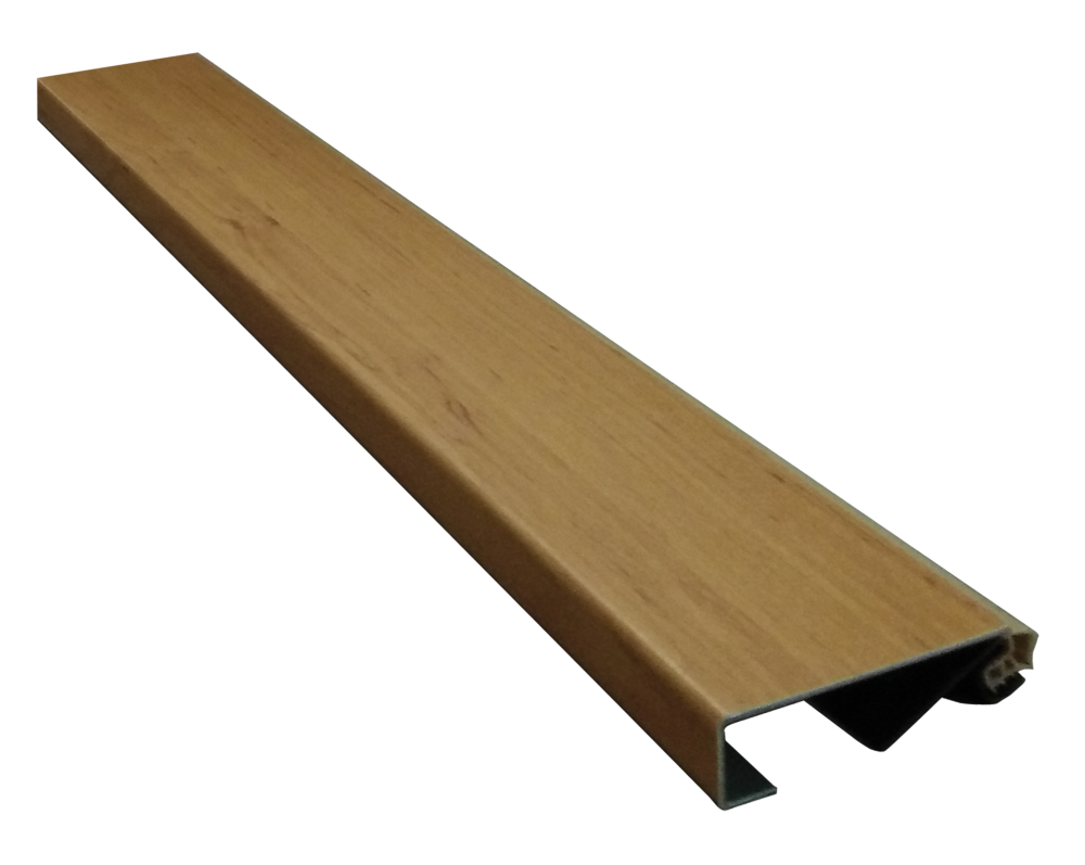 Die Oberfläche der Schwelle besteht aus Holzdekor-Laminat mit einer fein strukturierten Oberfläche.