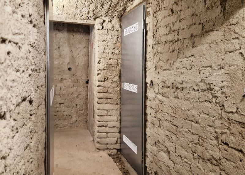 - Die ursprünglichen Holzabtrennungen werden durch stabile Stahlwände ersetzt und fest mit Boden, Decke und Seitenwänden des Gebäudes verankert.