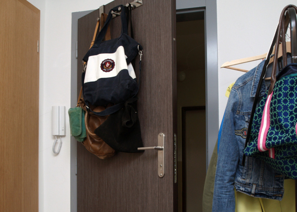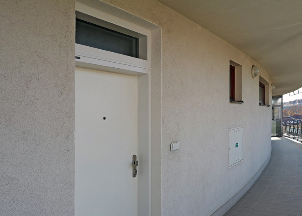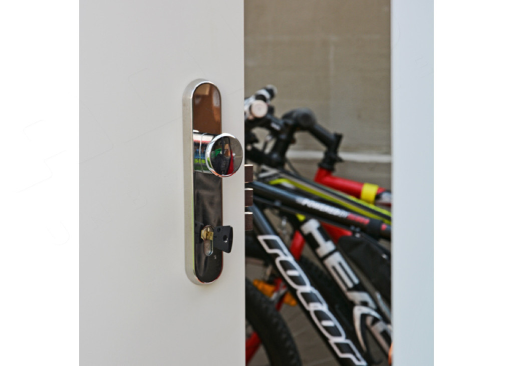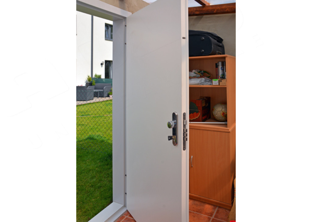 ADLO - Sicherheitstür LISBEO, Eingangstür in einen Kinderwagenraum, Türoberfläche Weiss