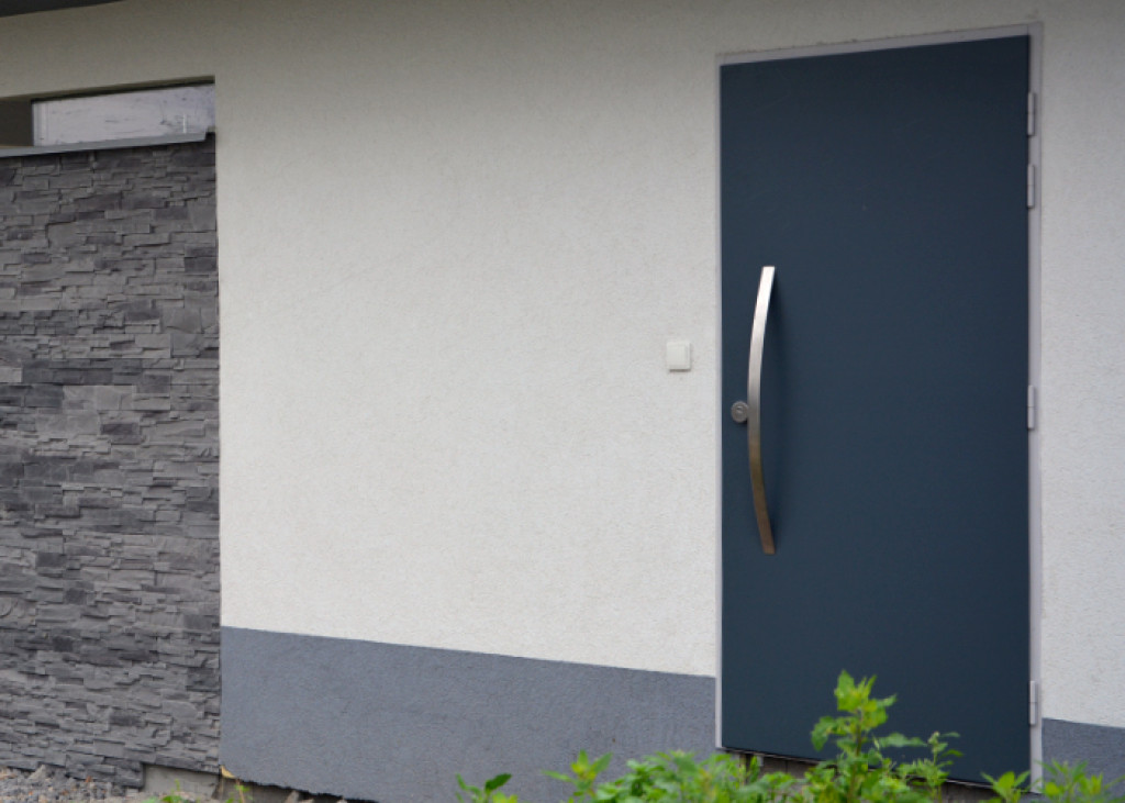 ADLO - Sicherheitstür TEDUO, Thermotür für den Außenbereich + Zarge, Oberfläche Color, atypischer Türgriff