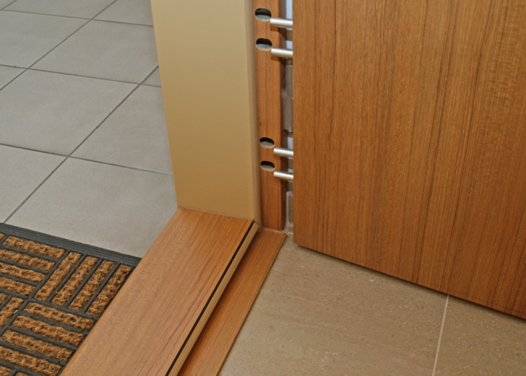ADLO - Sicherheitstür ADUO, Abstimmung der Oberflächen der Tür, der Türschwelle, der Leiste und der Türzarge an der Bandseite