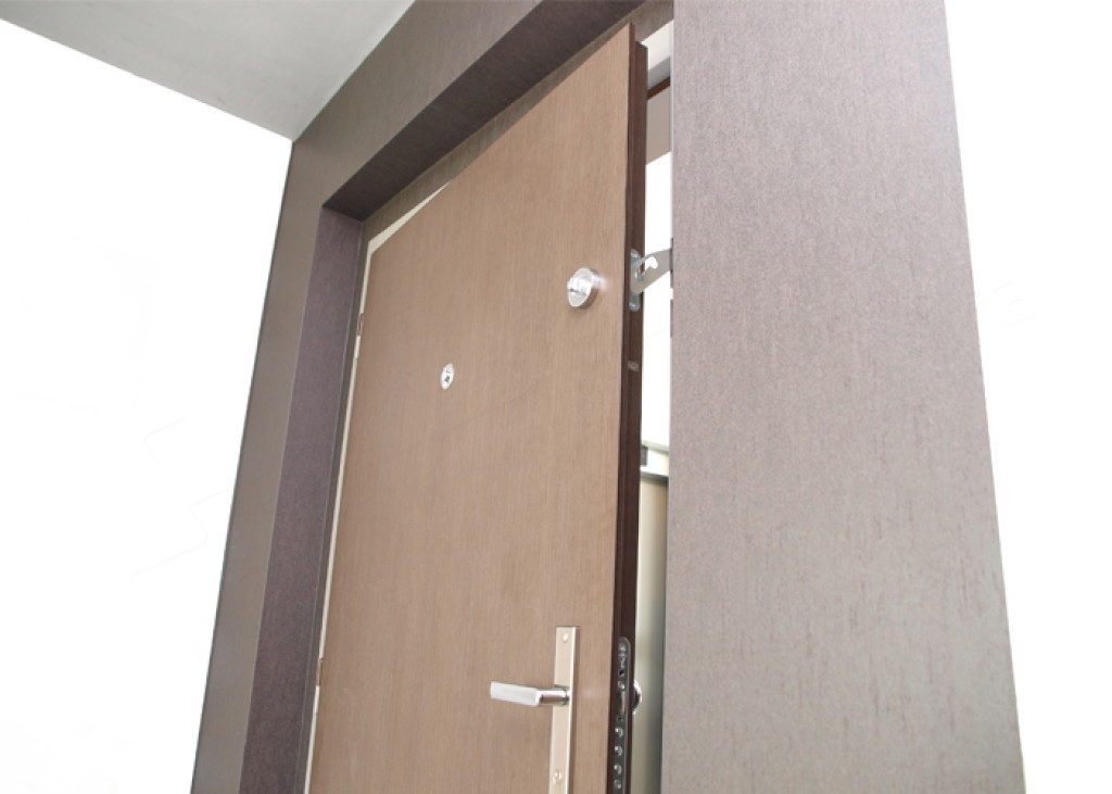 ADLO - Sicherheitstür ADUO, glattes Design, Folienbeklebung der ADLO Türzarge an der Bandseite
