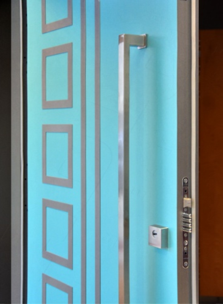 ADLO - Thermo-Außenraumtür Teduo, verglast atyp, Oberfläche des Thermo-Glases Stopsol blau