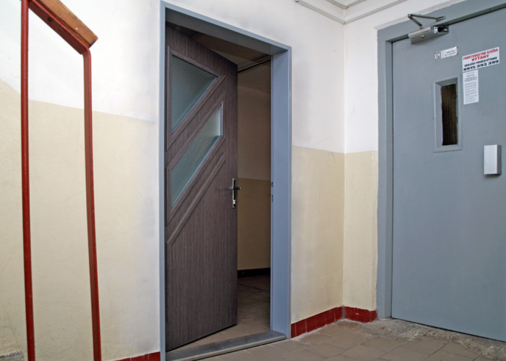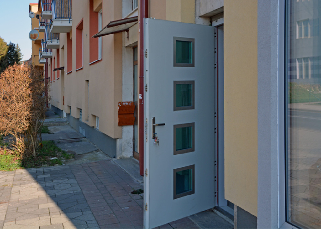 • ADLO - Thermo-Außenraumtür LISBEO, verglaste Tür in einem gemeinsam genutzten Raum eines Wohnhauses