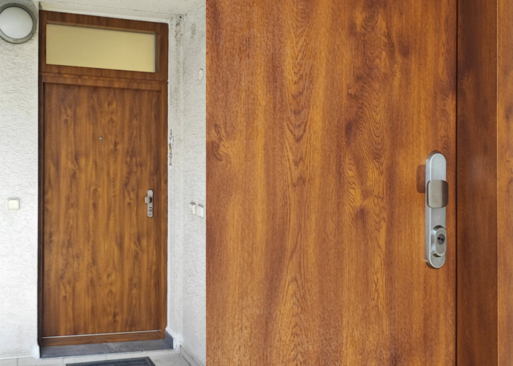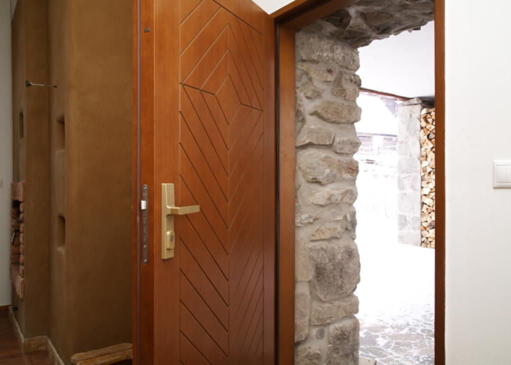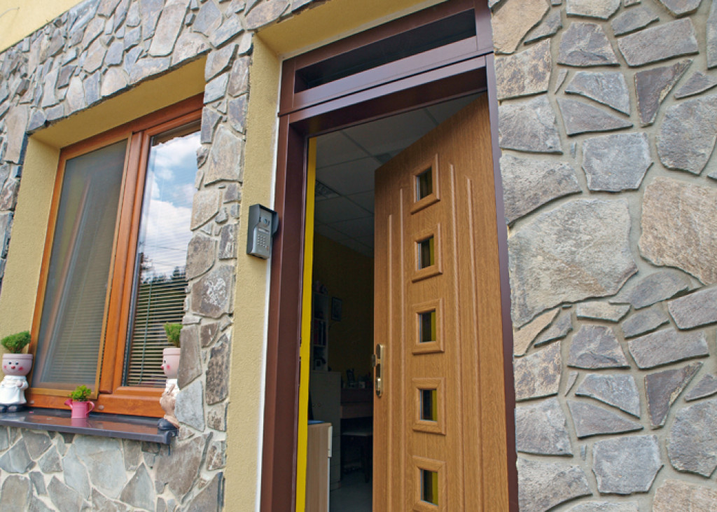 ADLO - Thermo-Außenraumtür Kasim, Türdesign atypisch Furnier profilliert, Eingang in ein Ferienhaus