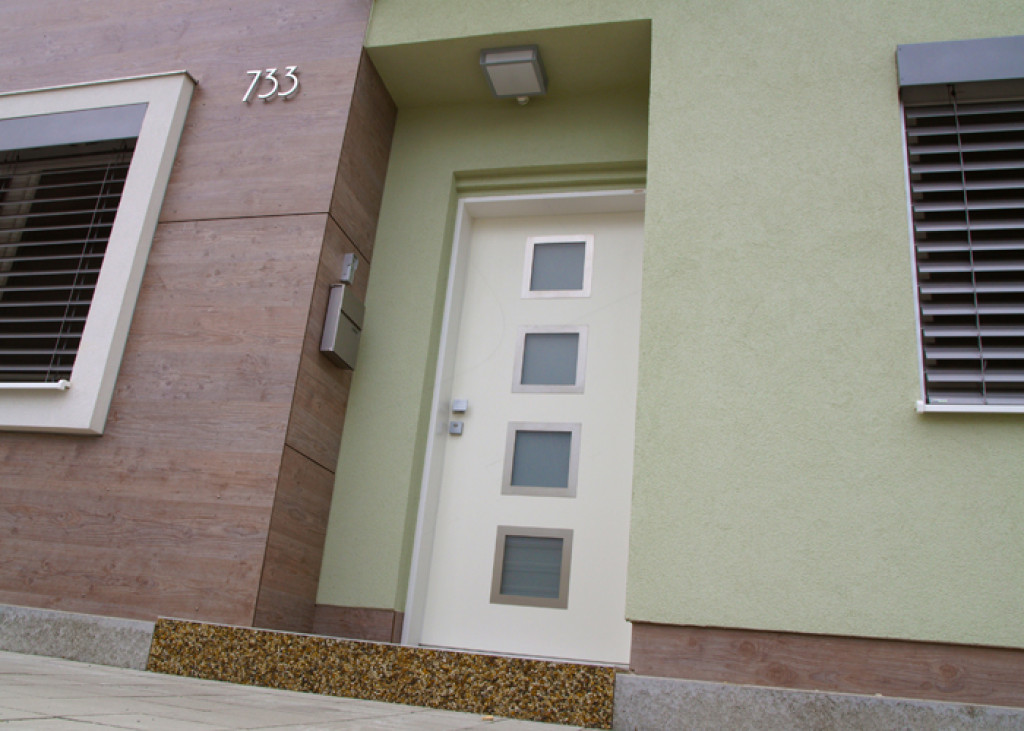 ADLO - Thermo-Sicherheitstür KASIM, verglast PS371, Einfamilienhaus in einer Reihenhausbebauung