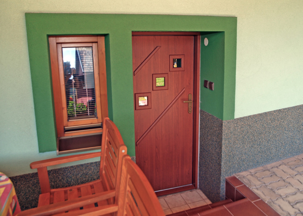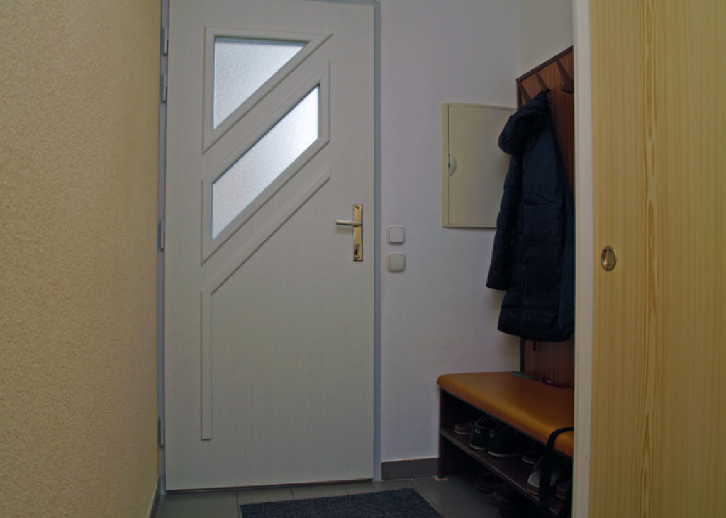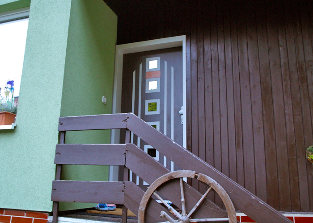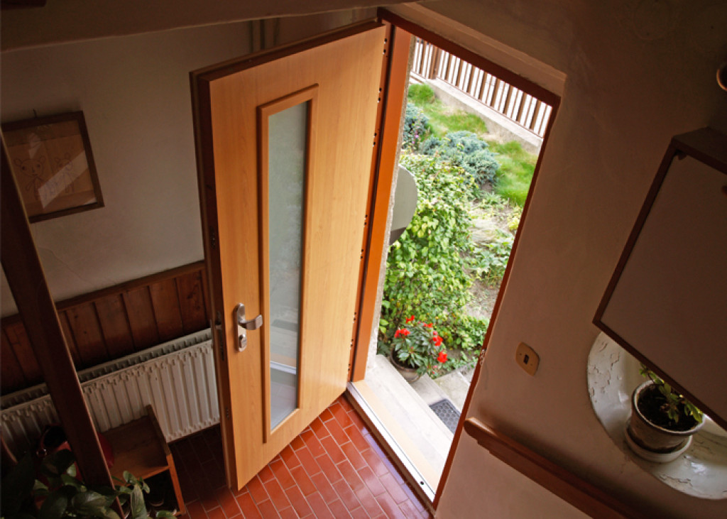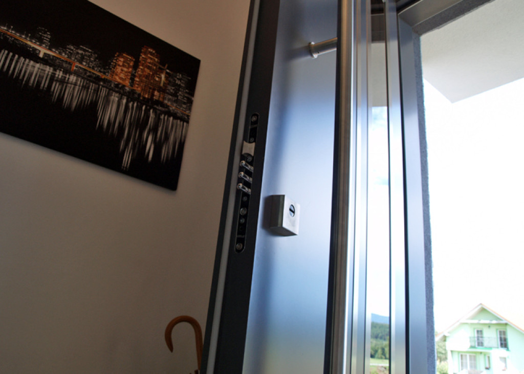 ADLO - Sicherheitstür ADUO, atyp., verglast, Massiv, Eingang in ein Ferienhaus