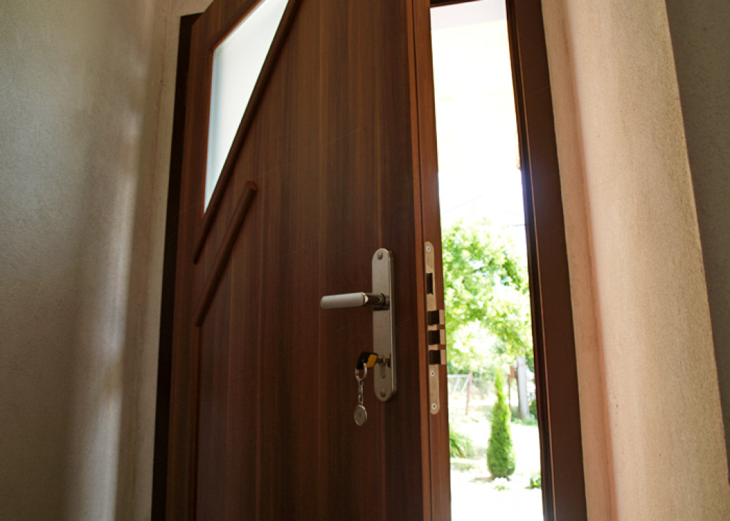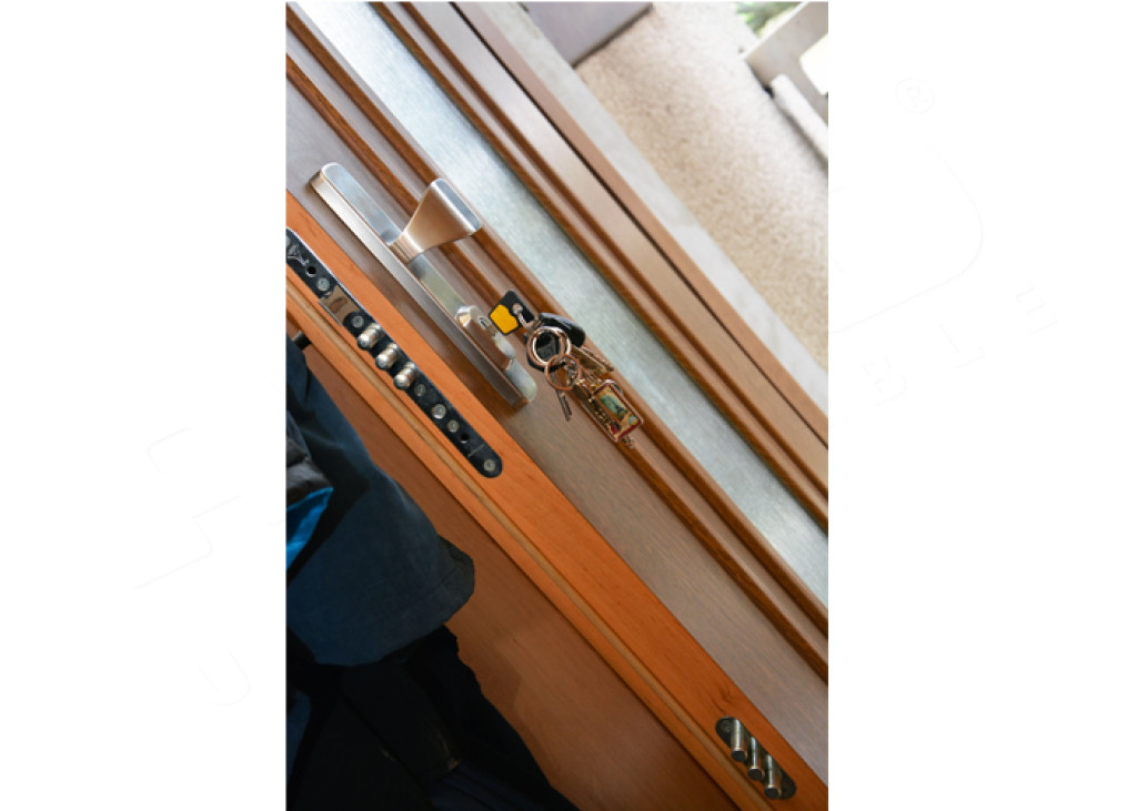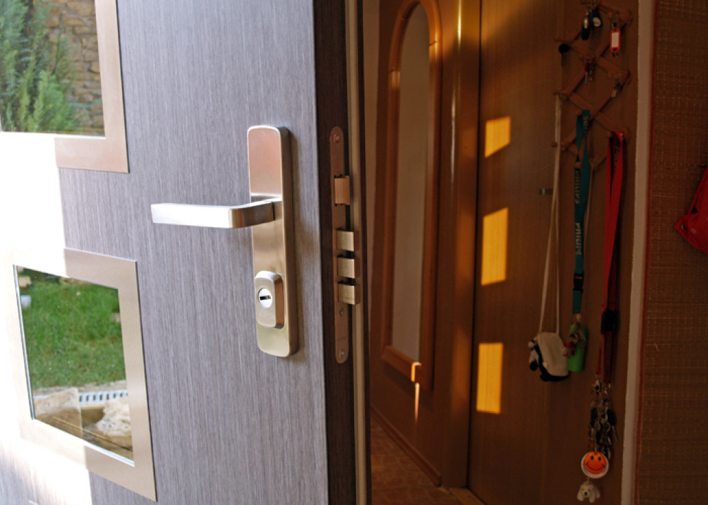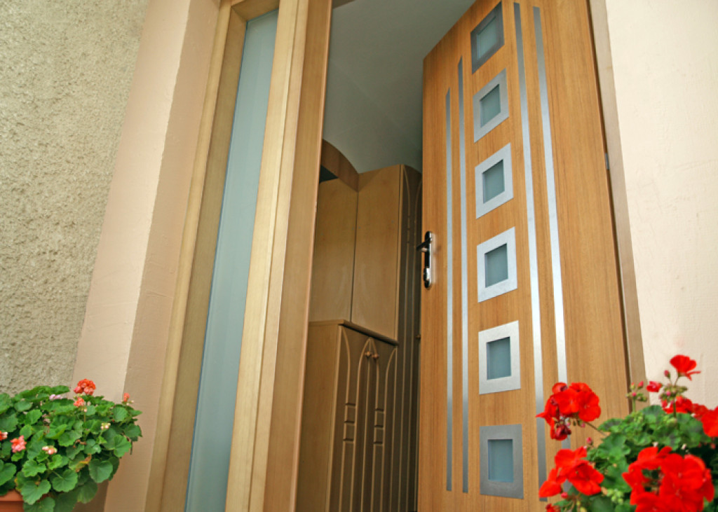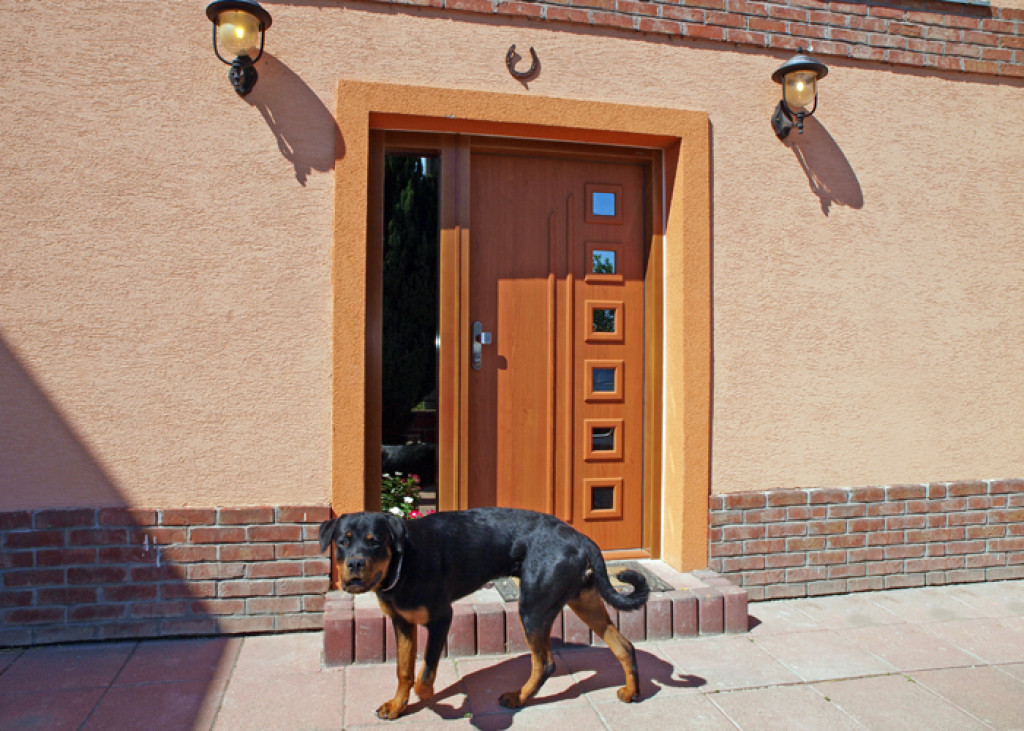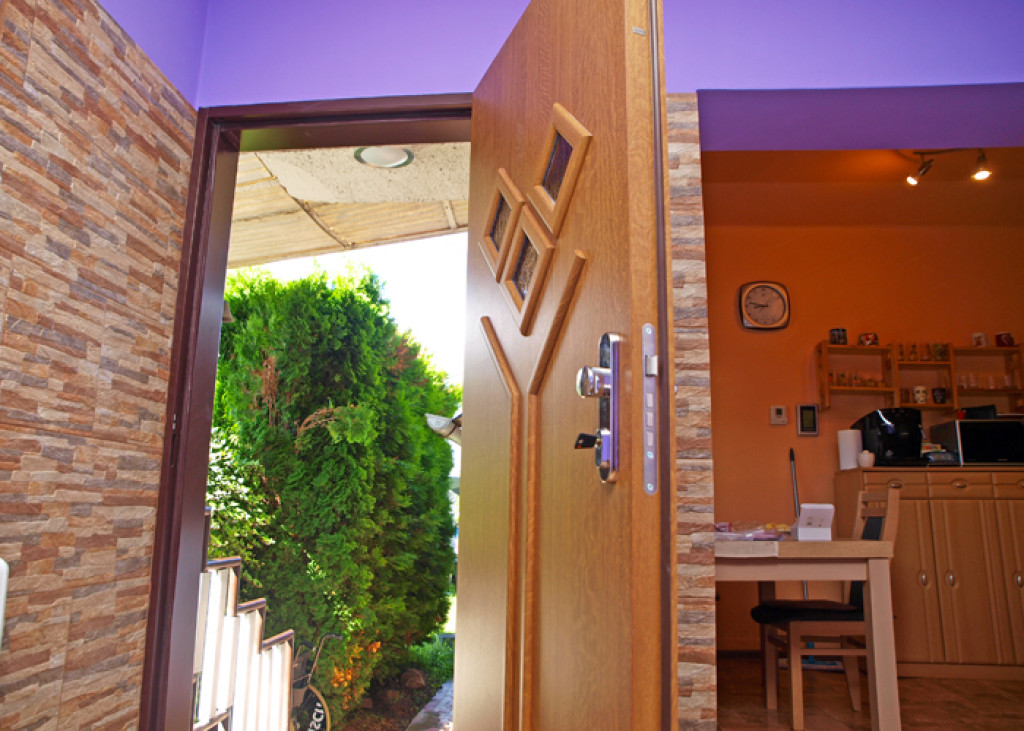 ADLO - Sicherheitstür ADUO, atyp., verglast, Massiv, Eingang in ein Ferienhaus