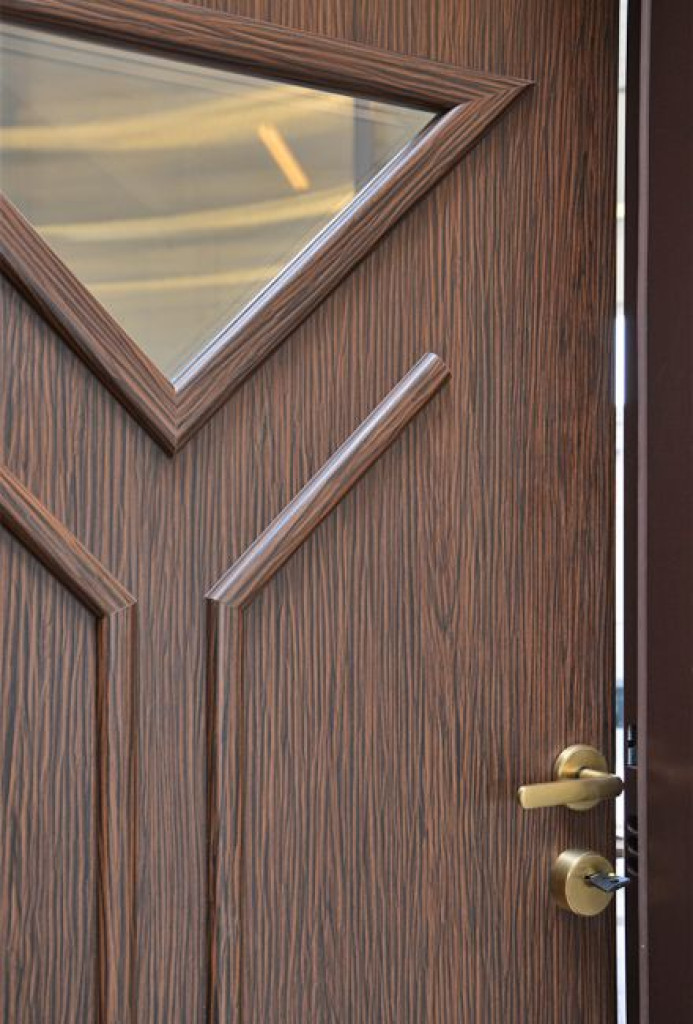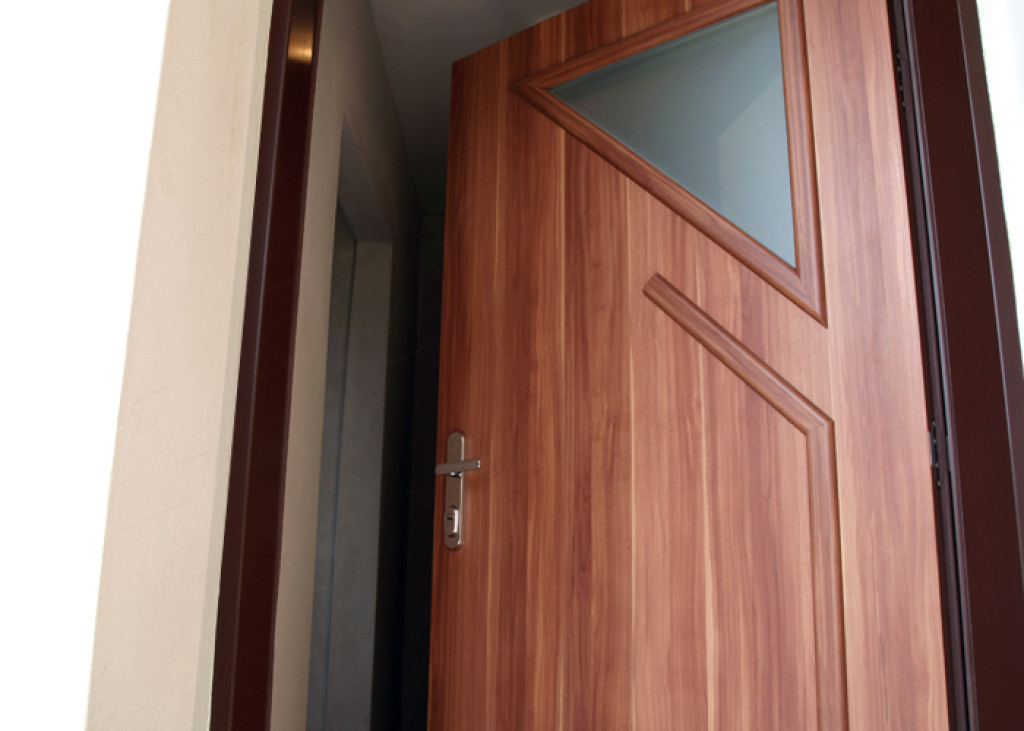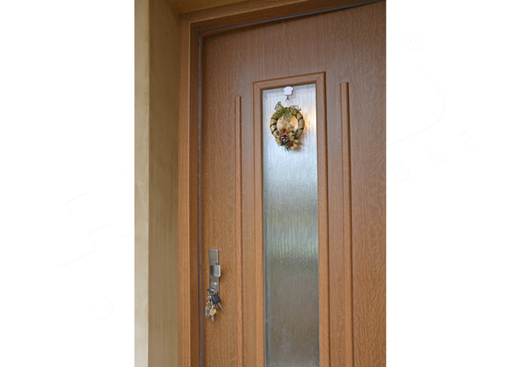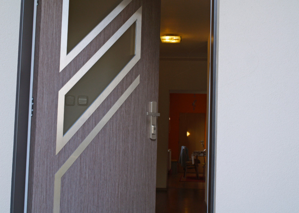 ADLO - Thermo-Sicherheitstür KASIM, verglast P520, Türoberfläche Geta 730, Folienbeklebung der ADLO Türzarge