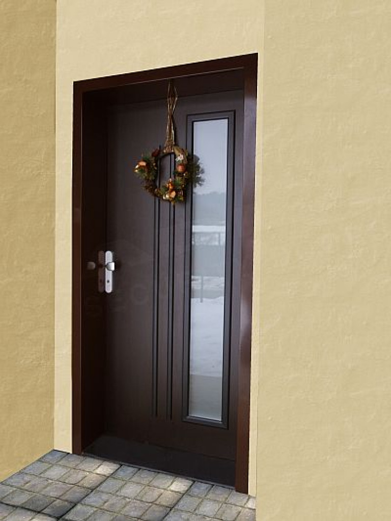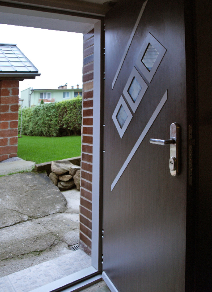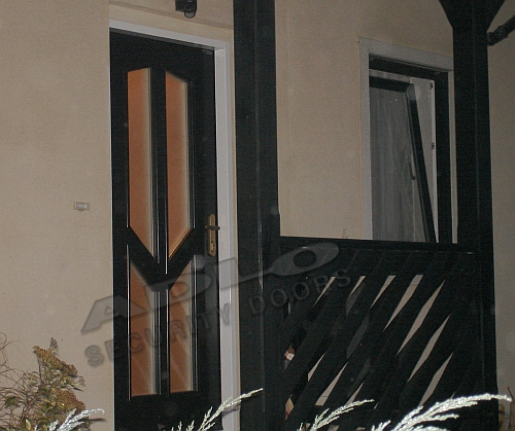 ADLO - Thermo-Sicherheitstür KASIM, Thermo-Dreifachglas P522, Glas Stopsol - bronze, Folienbeklebung der Türzarge