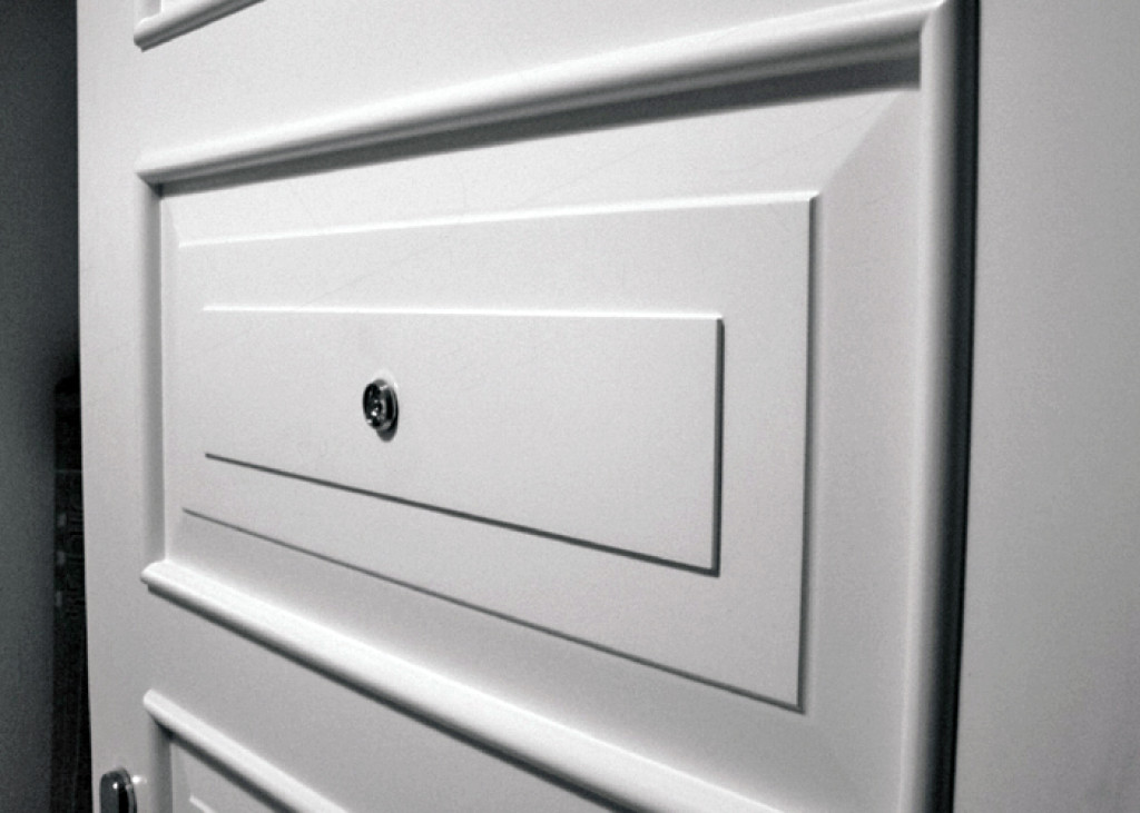 ADLO - Sicherheitstür ARDEN, atypische Kassettenausführung, Oberfläche weiss, Detail