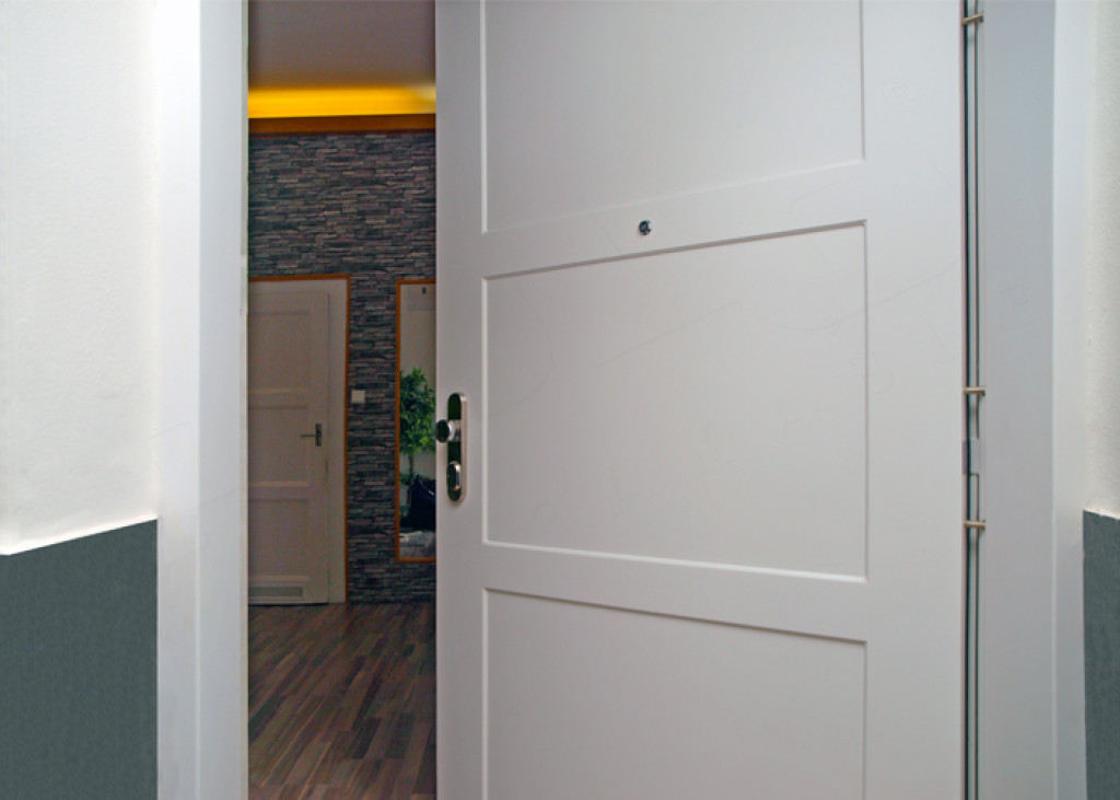 Sicherheitstür ADUO, atypische Kassettenform, Oberfläche weiß