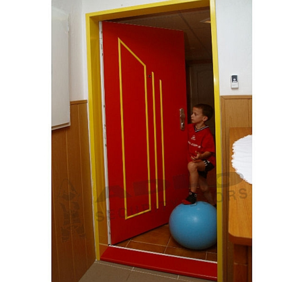ADLO - Sicherheitstür TEDUO, Leistenausführung L371, gelbe Leisten und gelbe Zarge
