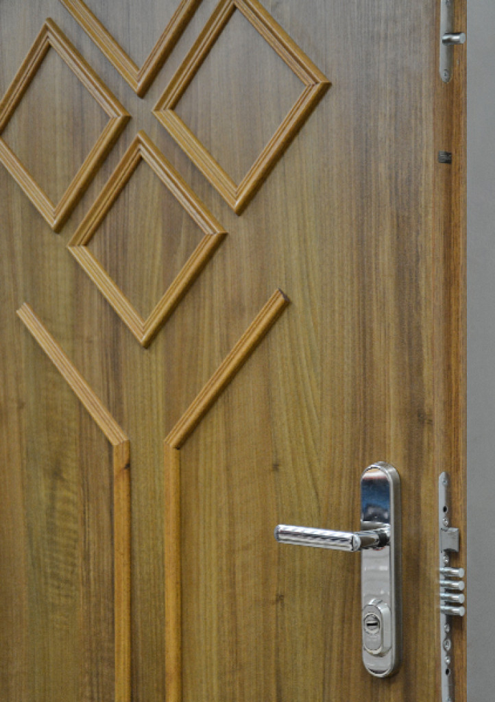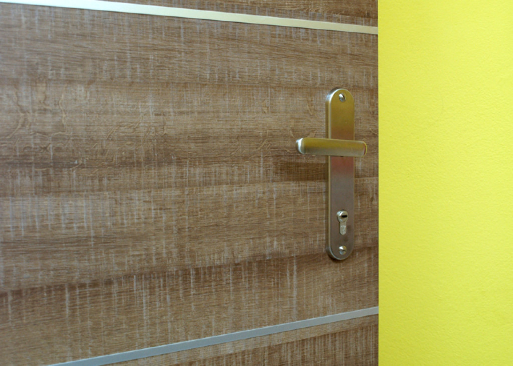 ADLO - Sicherheitstür TEDUO, Leistenausführung LB200, abgerundete Leisten, Oberfläche Lamino MDF für den Innenbereich