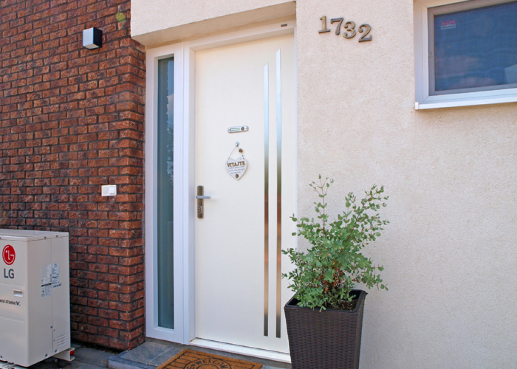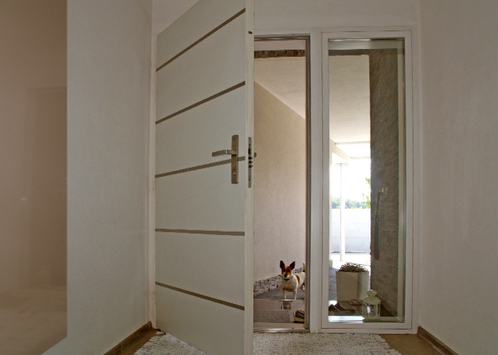 ADLO - Thermo-Außenraumtür Teduo, atypisches Design, Leistenausführung, atypischer Türgriff, atypisches seitliches Fixteil