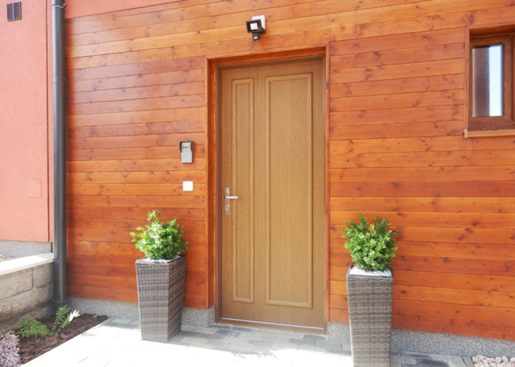 ADLO - Thermo-Außenraumtür Lisbeo, Leistenausführung LOG 402, Oberfläche der Tür und der Leisten G656