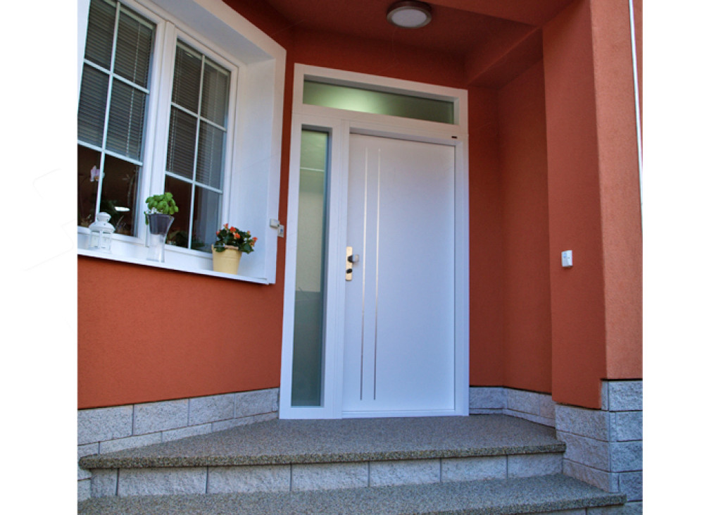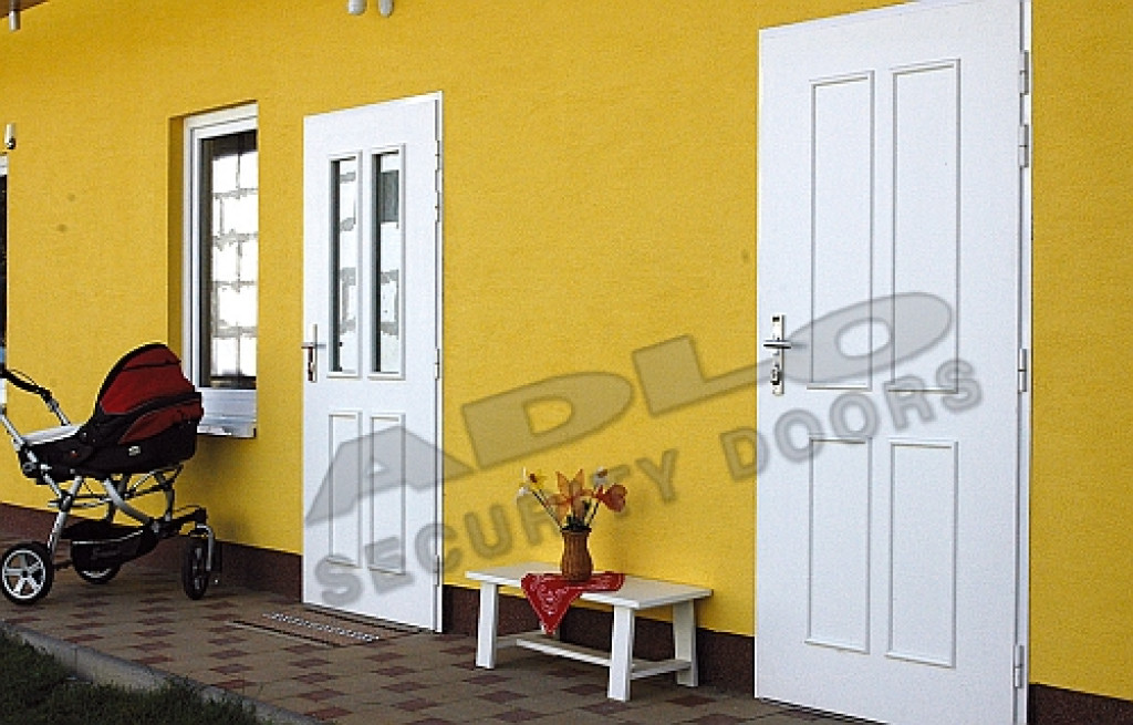 ADLO - Sicherheitstür ARDEN, Leistenausführung L-100, abgerundete Leisten, spritzlakiert RAL, Thermo-Tür und seitlicher Fixteil