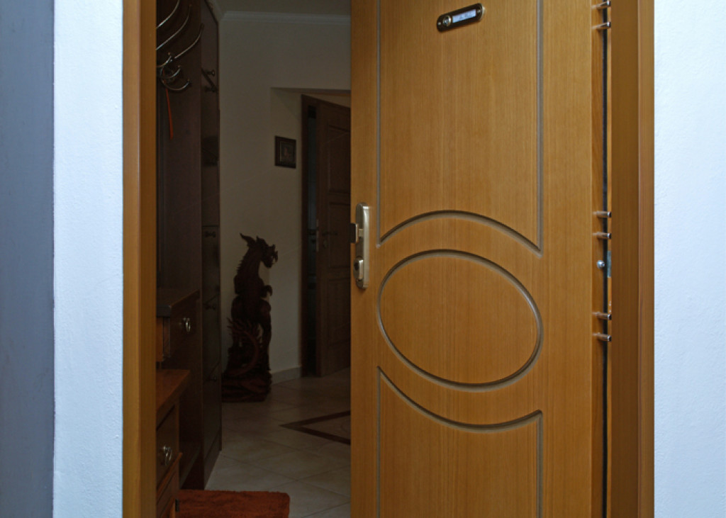 ADLO - Thermo-Sicherheitstür Kasim, Türdesign atypisch Furnier profiliert, Eingang in ein Ferienhaus