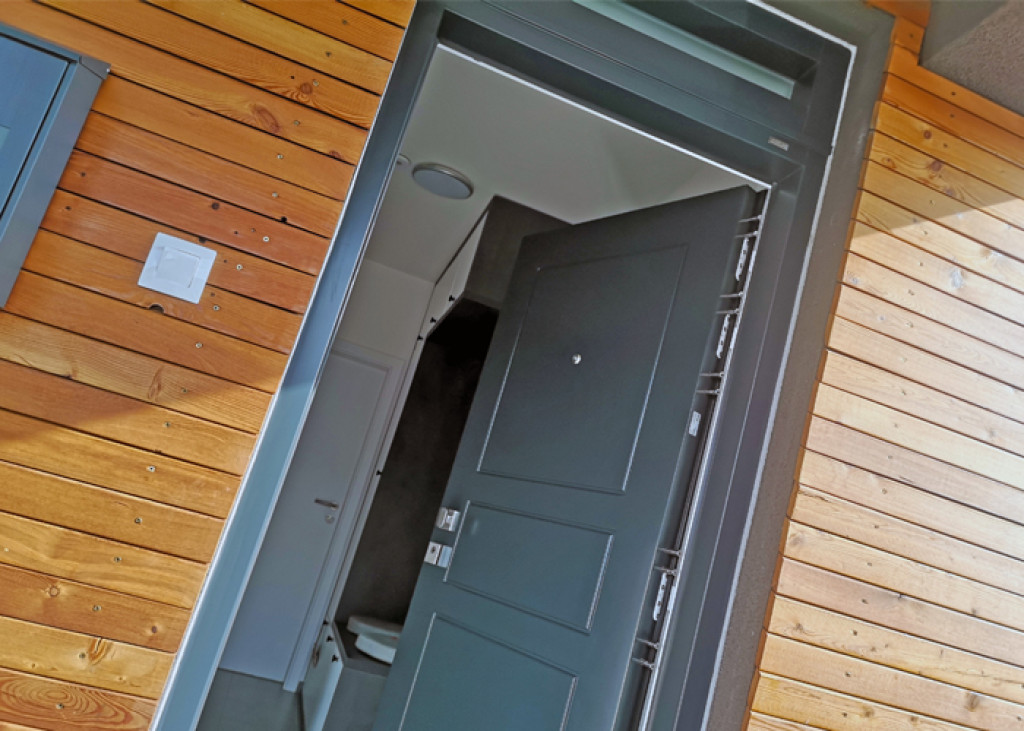 ADLO - Sicherheitstür ADUO, atyp., verglast, Massiv, Eingang in ein Ferienhaus