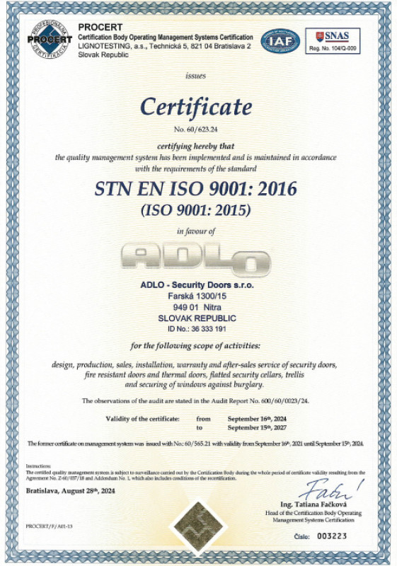 Zertifikat ISO 901 : 2016