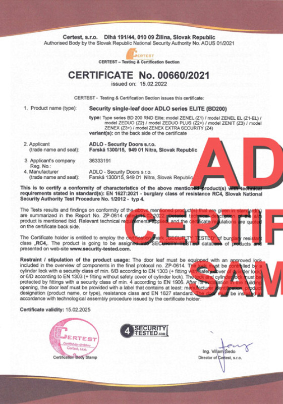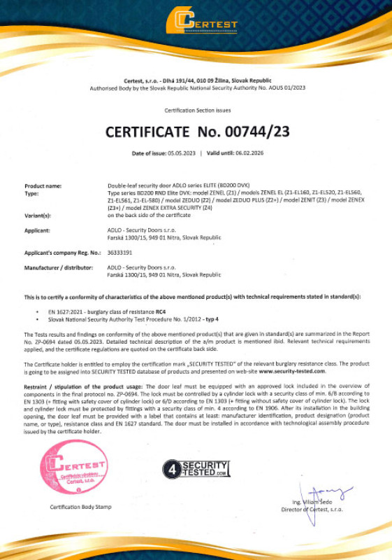 ADLO Sicherheitstüren Zenit, Zenex, BT4