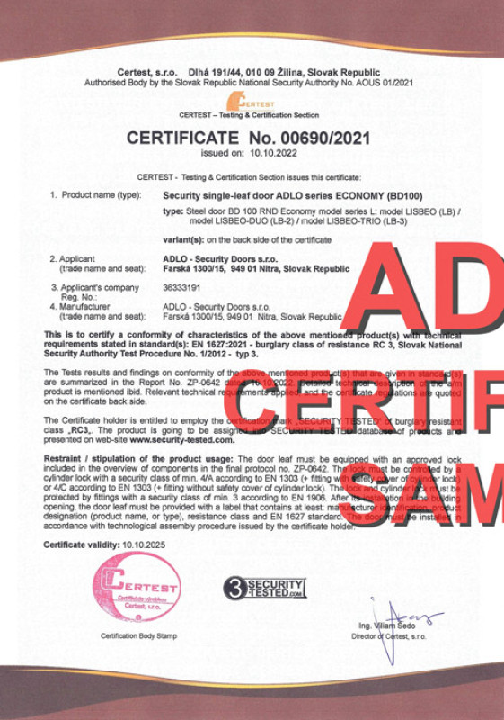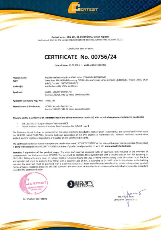 ADLO Sicherheitstüren TEJEN M4, DIN EN 1627, RC3, anhang