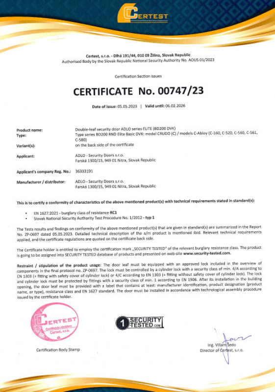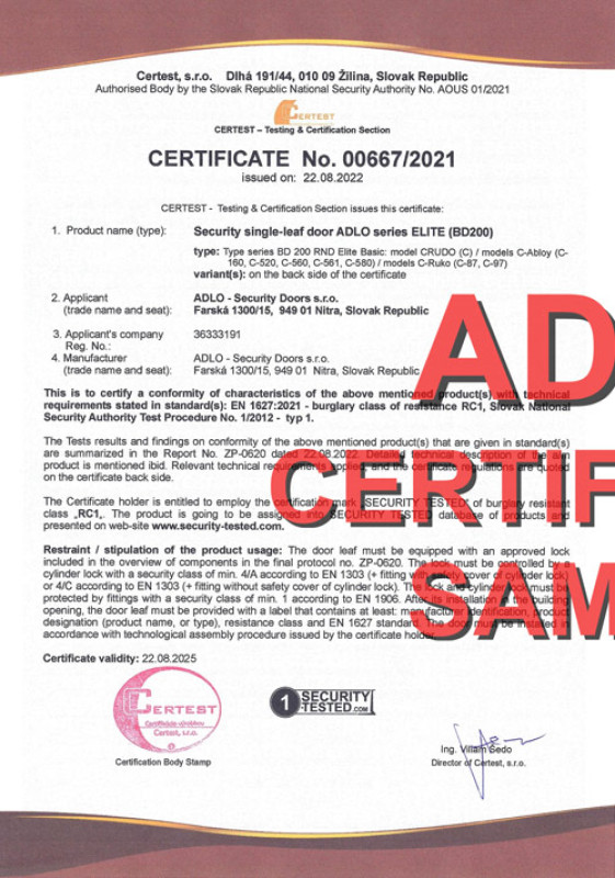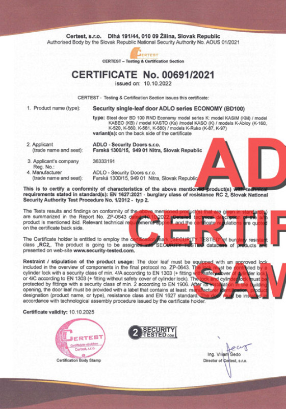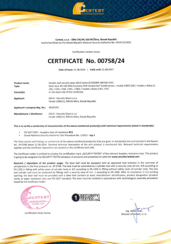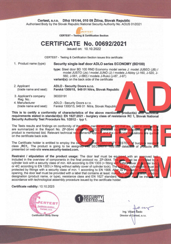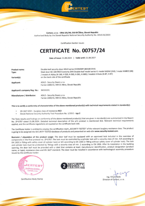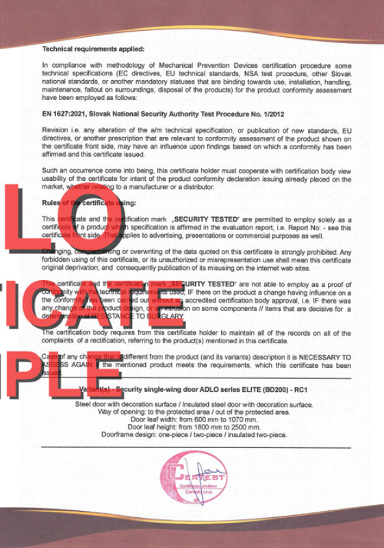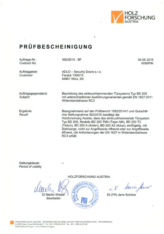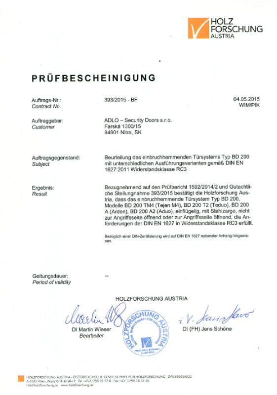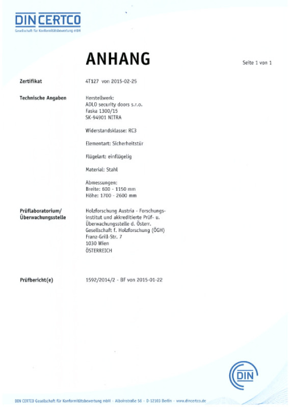 • ADLO Sicherheitstüren TEJEN M4, DIN EN 1627, RC3, anhang