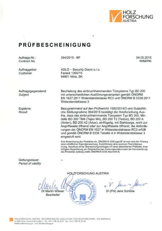 • ADLO Sicherheitstüren TEJEN M4, TEDUO, ADUO, ARDEN EN 1627, RC3, ÖNORM B 5338