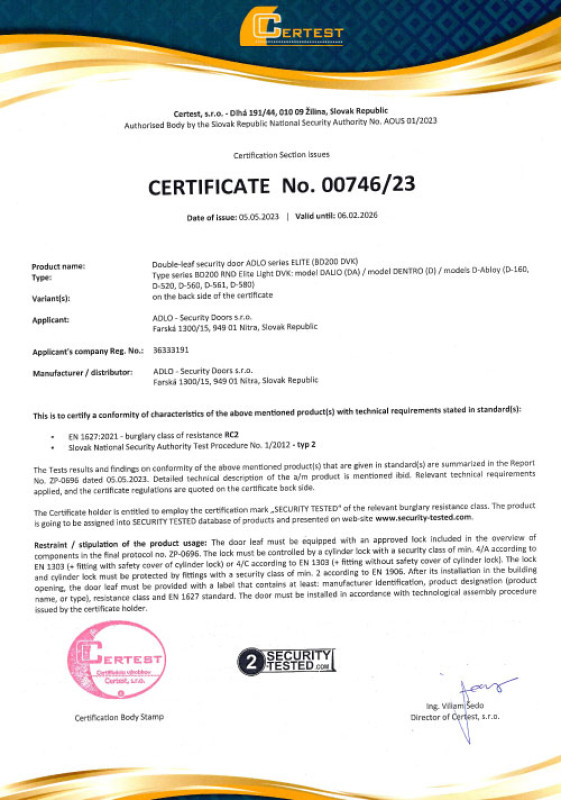 • ADLO Sicherheits-Doppelflügeltür Serie ELITE RC2